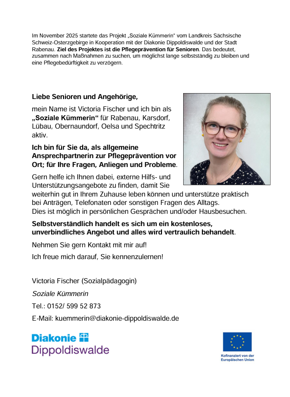 „Soziale Kümmerin“ für Rabenau, Karsdorf, Lübau, Obernaundorf, Oelsa und Spechtritz