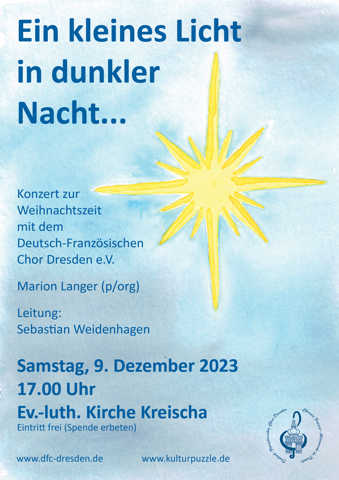 9. Dezember 2023, 17:00 Uhr, Konzert des Deutsch‐Französischen Chores Dresden mit dem Titel „Kleines Licht in der dunklen Nacht“.