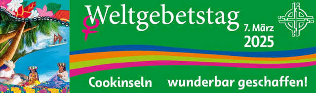 Am 7. März feiern wir in unseren Gemeinden den Weltgebetstag, der für dieses Jahr von Frauen/ Christinnen der Cookinseln vorbereitet wurde. Die 15 Inseln, weit verstreut im Südpazifik, sind ein Tropenparadies. Die Frauen der Cookinseln möchten uns ihre positive Sicht auf Gottes Schöpfung vermitteln: „wunderbar geschaffen“ So sehen sie sich, so sehen sie ihre Gegenüber und die Welt, in der sie leben. Das wollen sie uns, voller Stolz auf ihre Maori-Kultur und Sprache, übermitteln. Wir werden auch hören von ihren Spaltungen, hinsichtlich bedrohter Ökosysteme oder der Gewalt gegen Frauen und Mädchen.