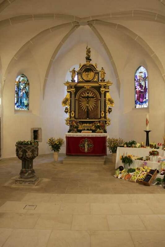 Als die ersten deutschen Siedler in unser Gebiet kamen, war die Kirche das erste Gebäude am Ort, das errichtet wurde. Unsere Kirche fand ihre Anfänge wohl im 12. Jahrhundert. Es wird eine schlichte, erst hölzerne, später steinerne Kapelle gewesen sein. Nach und nach wurde sie erweitert, umgebaut und vervollkommnet. Die Jahreszahlen über dem Kirchenportal zeigen uns heute Jahre großer Umbauten an: 1514, 1616 und 1749, als der Kirchturm seine heutige Erscheinungsform bekam.