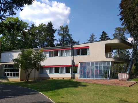 Weiter ging es zum „Schminke Haus“. Wir freuten uns, dass hier nun auch unser Pfarrer mit seiner Frau dazu kam. Um 14 Uhr begann die Führung, zunächst im geschmackvoll gestalteten Garten. Wir erfuhren einiges aus dem Leben der Familie Schminke aber auch über die wirtschaftliche Entwicklung des Fabrikanten und Chefs der Löbauer Nudelfabrik. Das Haus Schminke wurde von 1930 -1933 erbaut und zählt weltweit zu den wichtigsten Häusern der klassischen Moderne. Das Ehepaar Schminke entwickelte gemeinsam mit dem Architekten Hans Scharoun dieses extravagante und zugleich funktionelle Anwesen, das wie ein Dampfer gestaltet ist. Nach eineinhalb Stunden interessanter Führung wurden die Lebensgeister im Eiskaffee am Markt wiederbelebt.