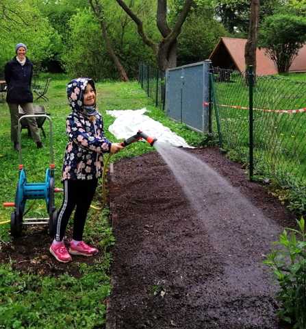 Dafür war es nötig, dass die ganze Fläche umgegraben wurde. Die Erde war voller Wurzeln und Steine. Deshalb war die Bearbeitung schwierig und langwierig. Zum Glück gab es immer wieder tatkräftige und nette Menschen, die bereit waren, mit dem Spaten die Erde zu bearbeiten und zum Teil mehrmals anstrengende Einsätze zu machen.