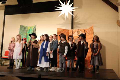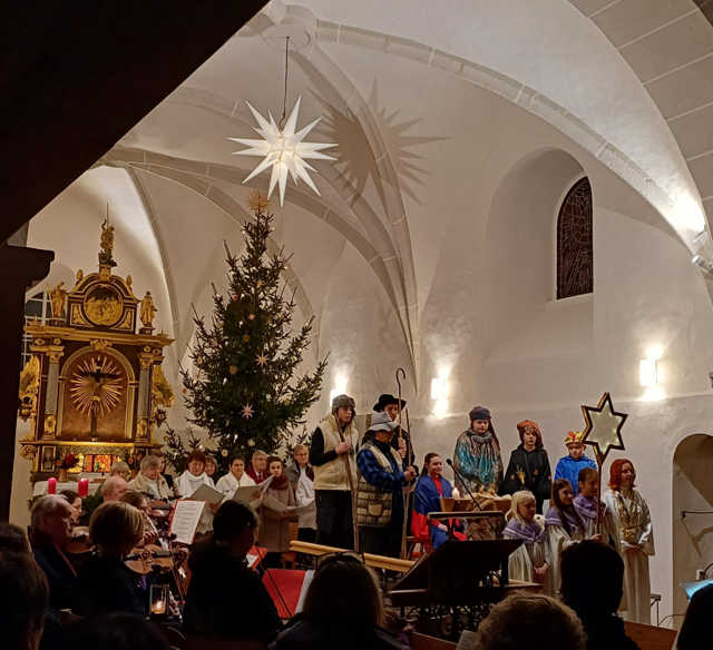 Die Kreischaer konnten dieses Weihnachten sich über drei Krippenspiele freuen: am Nachmittag führten die Kinder eine „Tierische Weihnacht“ auf, die sogar für die Maus gut ausging. Am Abend spielten Jugendliche, wie die drei Weisen mit ihrer Fremdenführerin Jephta einige Abenteuer erleben, ehe sie schließlich im Stall von Bethlehem landen. Und am Epiphaniastag war noch einmal das Krippenspiel der Quohrener (siehe Foto) in der Kirche zu erleben. Auch wenn nicht jedes Wort zu verstehen war: es hat wohl Mitwirkenden wie Zuschauern große Freude bereitet. (06.01.2024)