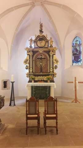 Die Wasserschäden an der Kassettendecke wurden fachmännisch unter dem wachsamen Auge der Denkmalpflege entfernt. Die farblichen Zierelemente an den Adelslogen behutsam restauriert und die Wandfarben, die Bemalung von Kreuzgewölbe und dem großen Bogen zwischen Altarraum und Kirchenschiff vollführt. Der Zugang zum Altarraum wurde behindertengerecht gestaltet, so dass jeder am Abendmahl teilnehmen kann. Der Altarraum wurde erweitert, so dass ein sehr großer Raum geschaffen wurde.