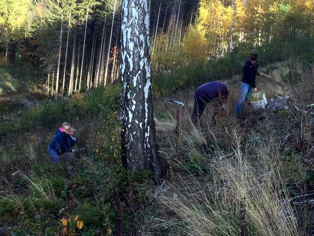 Auf Grund der Borkenkäferproblematik der letzten Jahre sind auch im Kreischaer Kirchenwald mehrere Waldflächen zu Brachflächen geworden. Die natürliche Verjüngung des Waldes entwickelt sich von selbst, benötigt seine Zeit und bestockt aber die Flächen nicht gleichmäßig. So haben junge Familien mit ihren Kindern an einen Samstag die Initiative zu einer Pflanzaktion ergriffen.