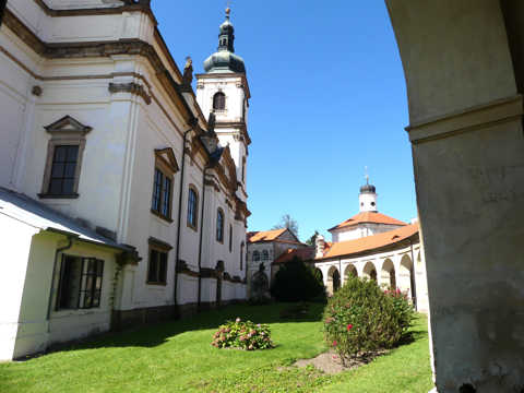 Auf unserer Weiterfahrt erreichten wir Marianské Radcice (Maria Ratschitz). Wir sahen uns die Wallfahrtskirche an und erfuhren viel über die Geschichte des Gotteshauses und dass Gläubige hier die wundertätige Mutter Gottes verehren. Neben der Kirche steht ein imposantes Gebäude, in dem Tagungen gehalten werden, in dem Jugendliche aber auch zu Arbeitseinsätzen gern gesehen sind. Der deutsche Pfarrer Philipp Irmer arbeitet seit ca. 20 Jahren in der Kirchgemeinde und im Kloster Osek. Er hat aus einem baufälligen Grundstück, in diesem damals heruntergekommenen Ort, in der Nähe eines Bergbaugebietes, ein kleines Paradies geschaffen. Wir konnten bei herrlicher Sonne im Garten unter Bäumen ein sehr schmackhaftes Mittagessen genießen und dazu ein im nahen Kloster Ossek gebrautes Bier kosten.