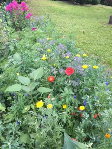 falls ihr nicht selbst dabei wart, habt ihr bestimmt inzwischen erfahren, dass Kerstin Wrana im Mai 2020 nach einem fröhlichen Familiengottesdienst gemeinsam mit einigen Christenlehrekindern und erwachsenen Helfern dieses Wildblumenbeet eingesät haben.