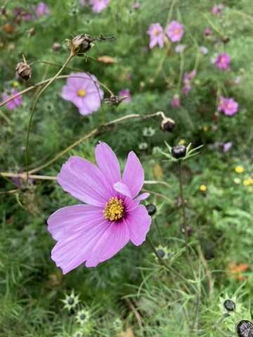 Im Herbst blühte die Cosmea und spendete auch Ende Oktober noch Nektar. Dagegen konnten die vielen Vögel im Pfarrgarten die Samen der schon verblühten Blumen fressen.