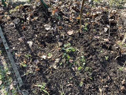 Kurz vor Beginn des nächsten Frühjahrs, Anfang März 2021, haben wir vorsichtig die abgestorbenen Stängel und die Blätter entfernt. Nun konnten die Samen, die im vergangenen Herbst aus den verblühten Blumen herausgefallen waren, erneut keimen und wachsen.