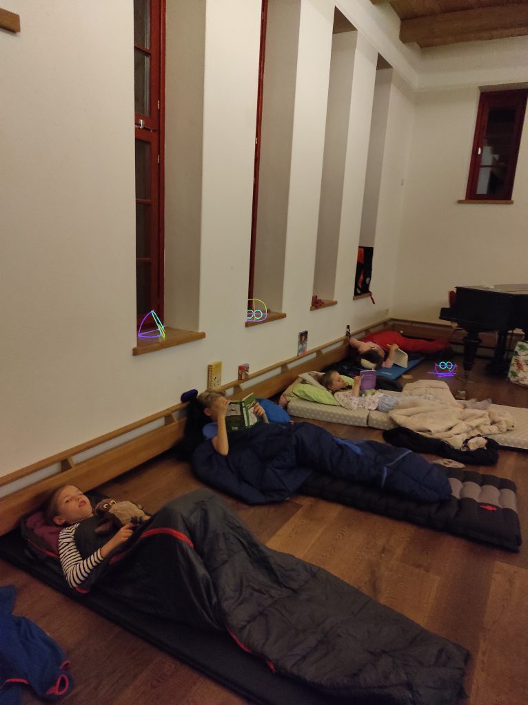 Nach einer langen Corona‐Pause konnte am 7. Oktober endlich wieder die Lesenacht für Schüler der 2. bis 5. Klasse in der Kirchenscheune stattinden. Nach dem leckeren Abendbrot und dem gemeinsamen Lesen von Geschichten begaben wir uns im dunklen auf eine Schnitzeljagd mit Knicklichtern rund um das Kirchengelände, welche mit einem Versteckspiel endete. Danach bereiteten sich die Kinder für die Nacht vor und lasen, in ihre Schlafsäcke gekuschelt, noch eifrig in ihren Büchern. Insgesamt nahmen